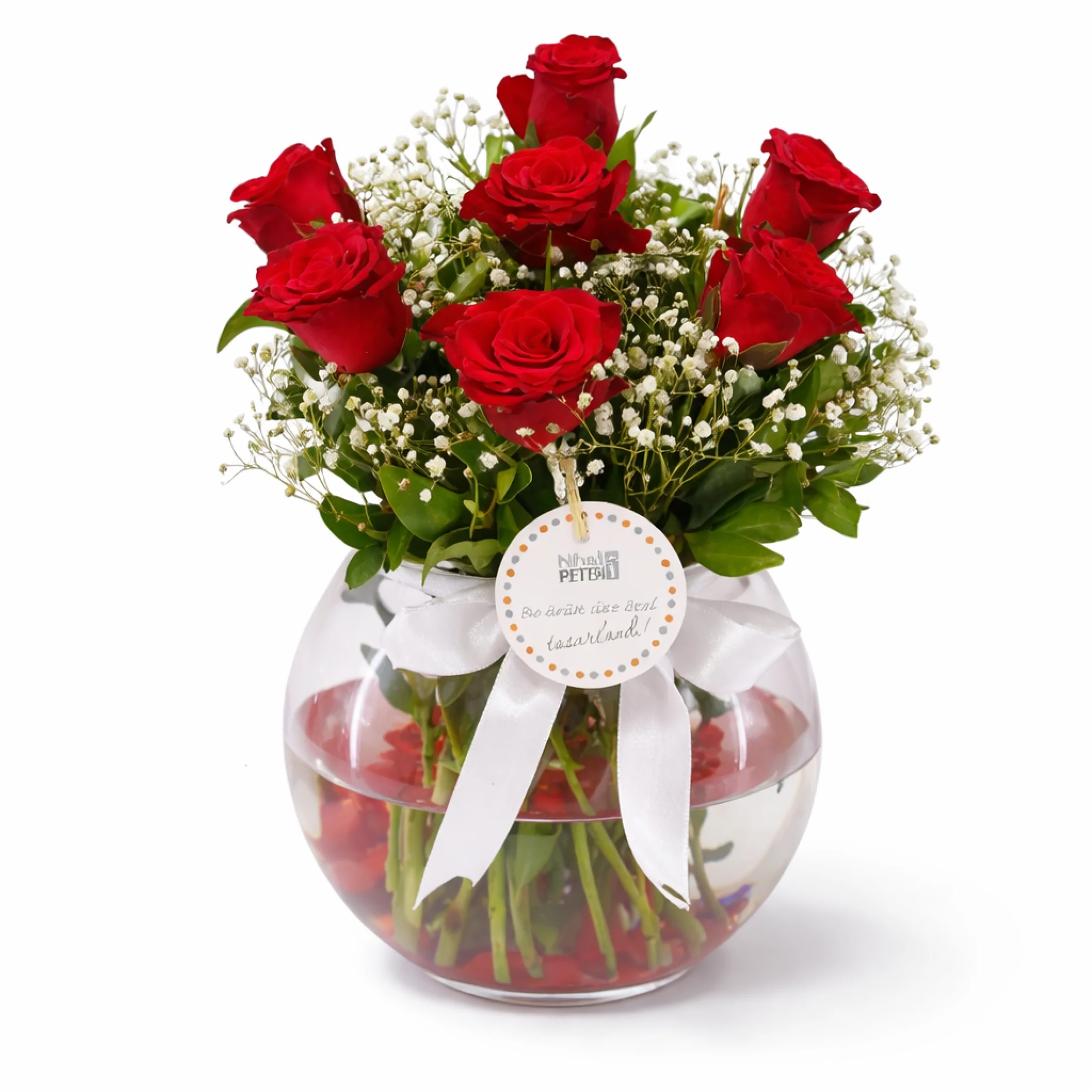 Bu özel ürün, bir akvaryum cam vazo içinde sunulur, bu da düzenlemeyi benzersiz kılar ve bir masa, tezgah veya sehpa üzerinde harika bir dekor parçasıdır. Gül aranjmanı, özel bir anı paylaşmak, bir doğum günü kutlaması veya romantik bir sürpriz için mükemmel bir seçenektir.