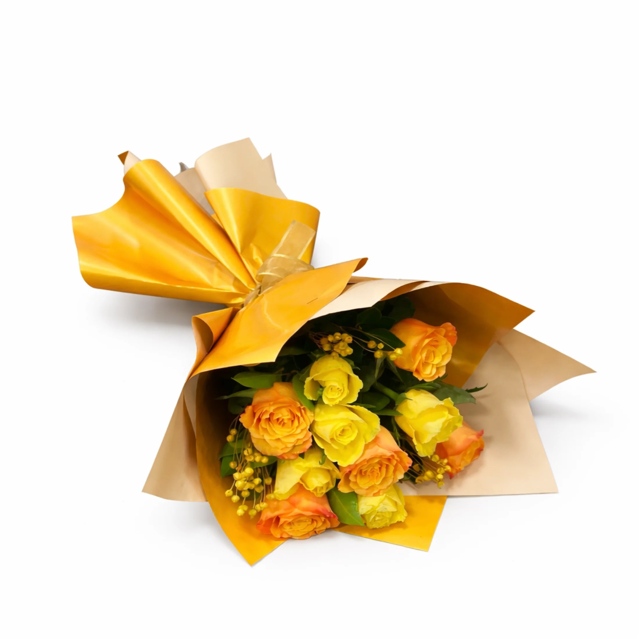 Güneşin sıcaklığını ve enerjisini yansıtan bu özel gül buketi, sarı ve turuncu güllerin uyumuyla hazırlanmıştır. Canlı renkleriyle mutluluk, pozitiflik ve içten duyguları en etkileyici şekilde ifade eder.