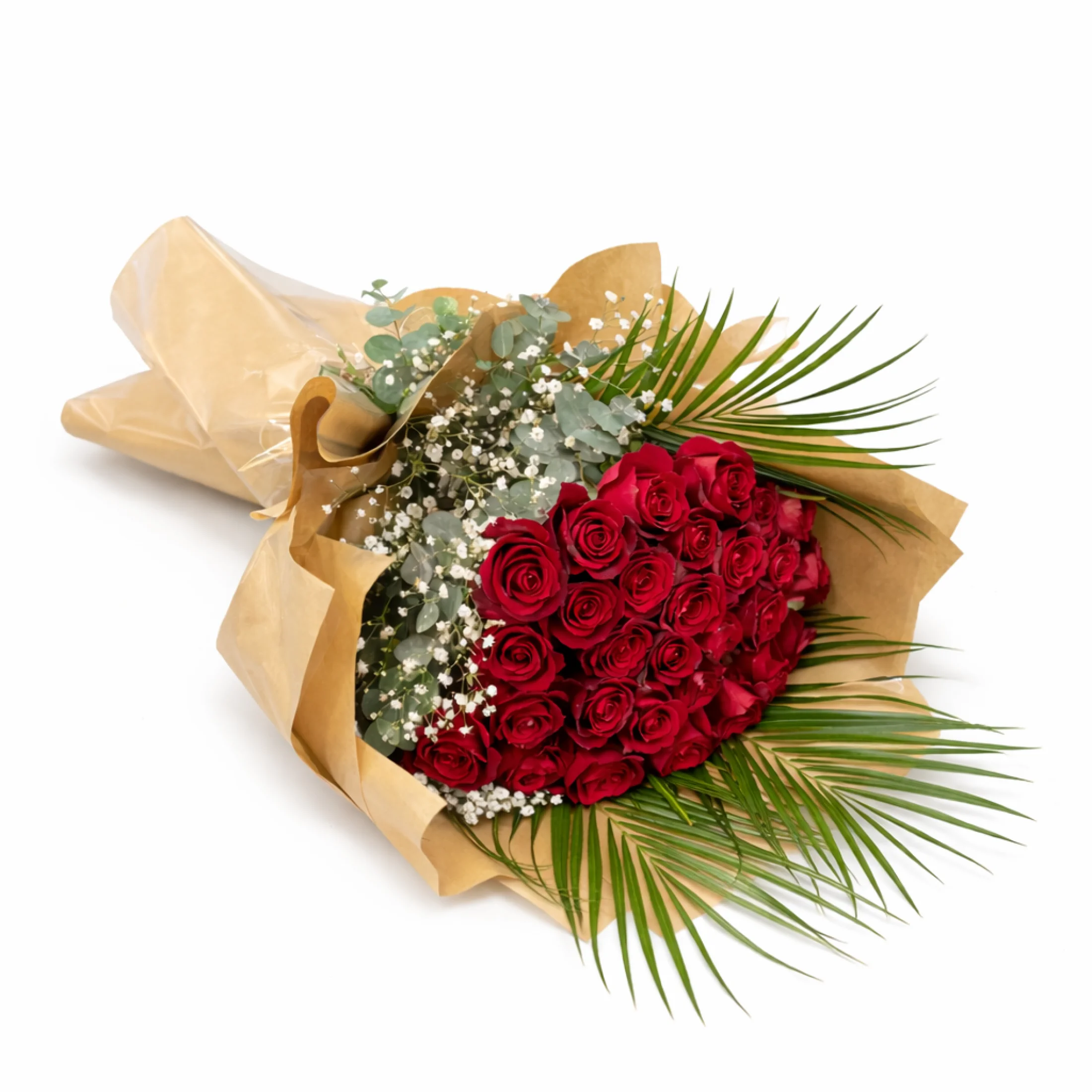 Her biri özenle seçilmiş 35 adet canlı kırmızı güller, zarif okaliptus dokunuşları ve şık ambalajıyla bu buket; duygularınızı sıradanlıktan çıkarıp unutulmaz bir ana dönüştürür.