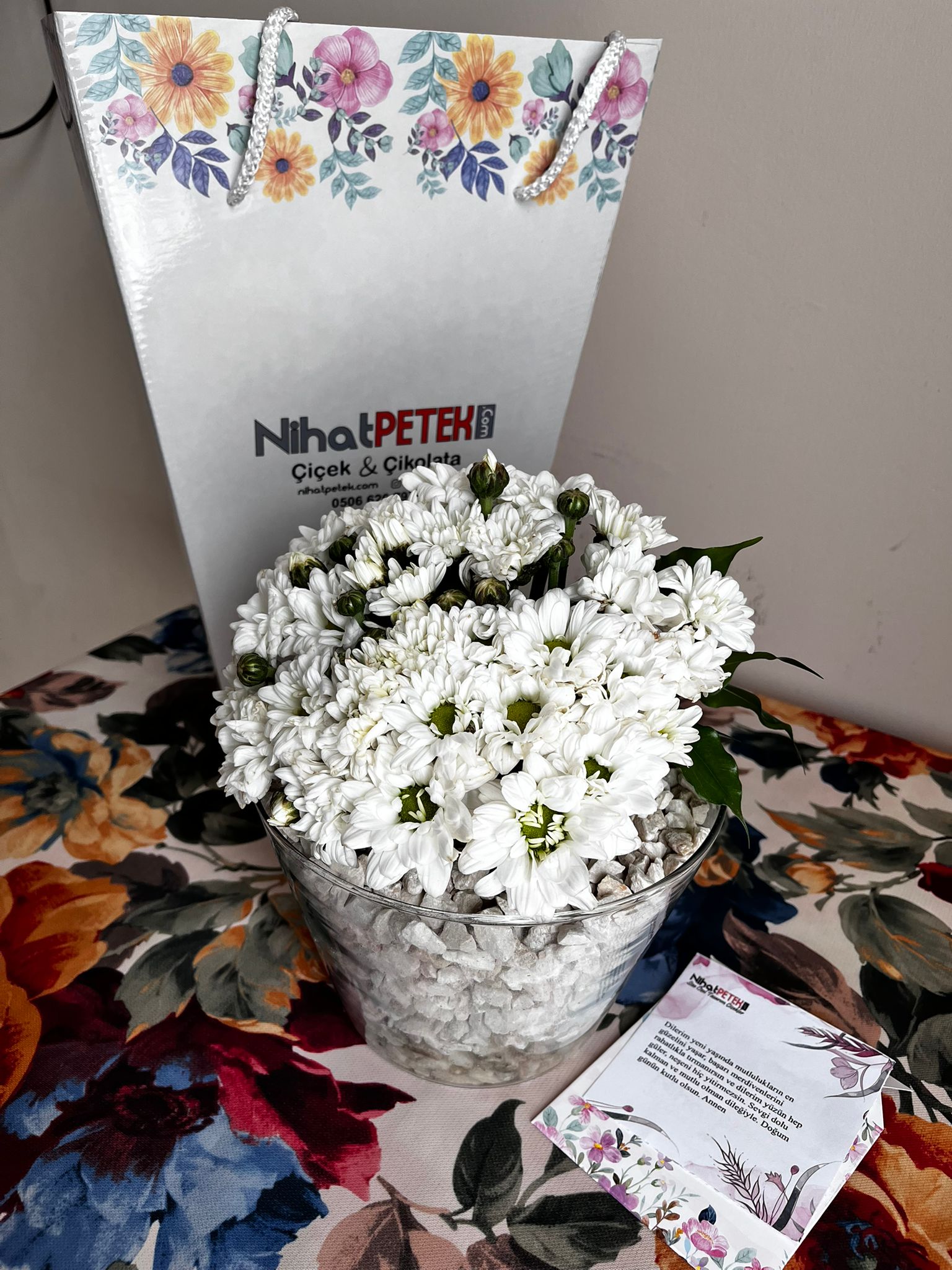 Konik Cam Vazoda Papatya AranjmanıPapatya fallarının cevap beklenen sorusu: Seviyor mu yoksa sevmiyor mu? Bu test sonucu ne kadar doğru çıkar bilinmez ama göndereceğiniz bir buket mis kokulu papatya ile sevdiklerinizin bu soruyu papatya fallarına sormasına gerek kalmayacak!