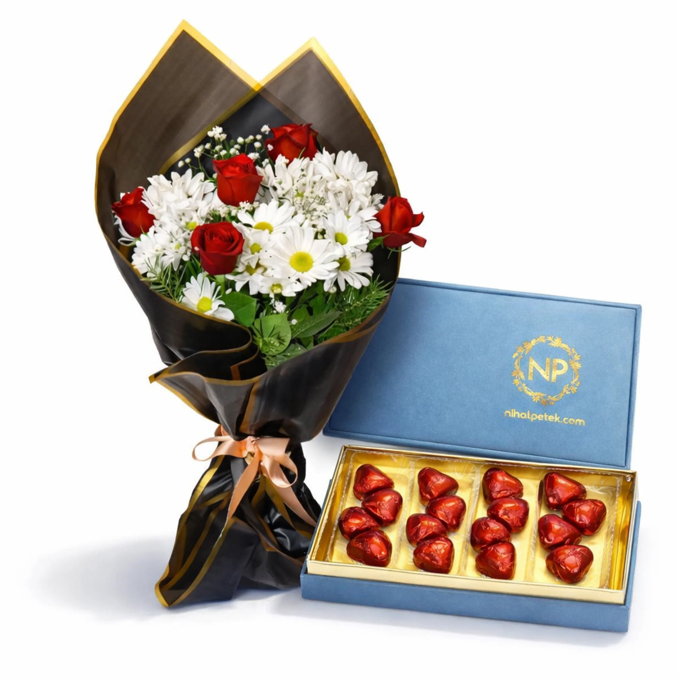 Kırmızı güllerin tutkulu dokunuşu, papatyaların saf enerjisiyle birleşerek göz alıcı bir buket oluşturuyor. Bu özel tasarıma eşlik eden kalp formunda premium çikolatalar ise hediyenizi sadece güzel değil, aynı zamanda unutulmaz bir deneyime dönüştürüyor.